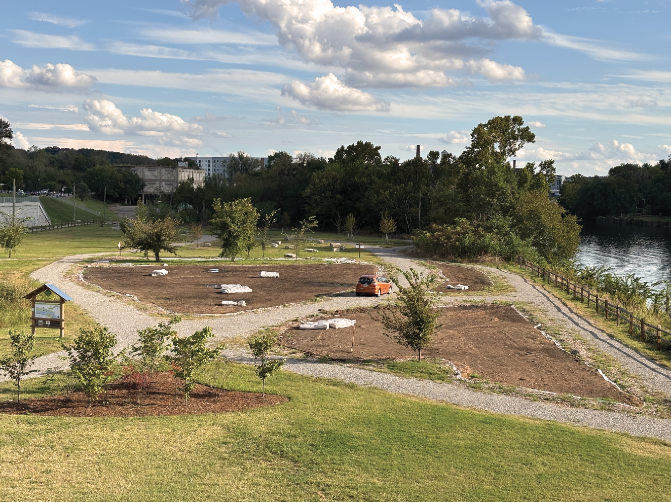 Last year Catherine and her team, along with volunteers and park Operations staff, converged on a section along the James just below Great Shiplock Park on the site of a former concrete factory. The land was terribly degraded. After removing massive chunks of concrete, the crew went to work removing the Johnson grass, a highly invasive species. They literally scraped the land clean with an excavator.