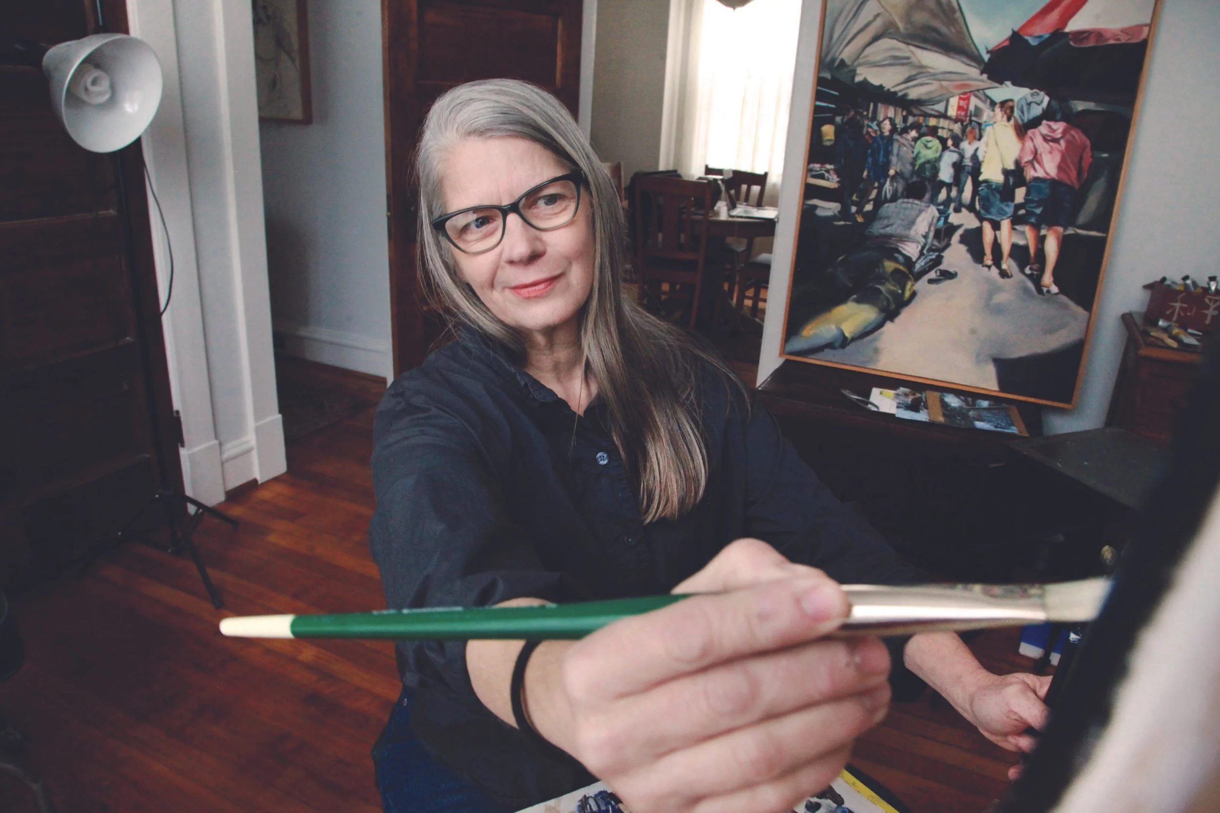 At the time she was still using acrylics and pastel in her artwork, and then one day Richard gave her his old brushes along with a few crimped tubes of oil paint. And a Mason jar, half-filled with turpentine.