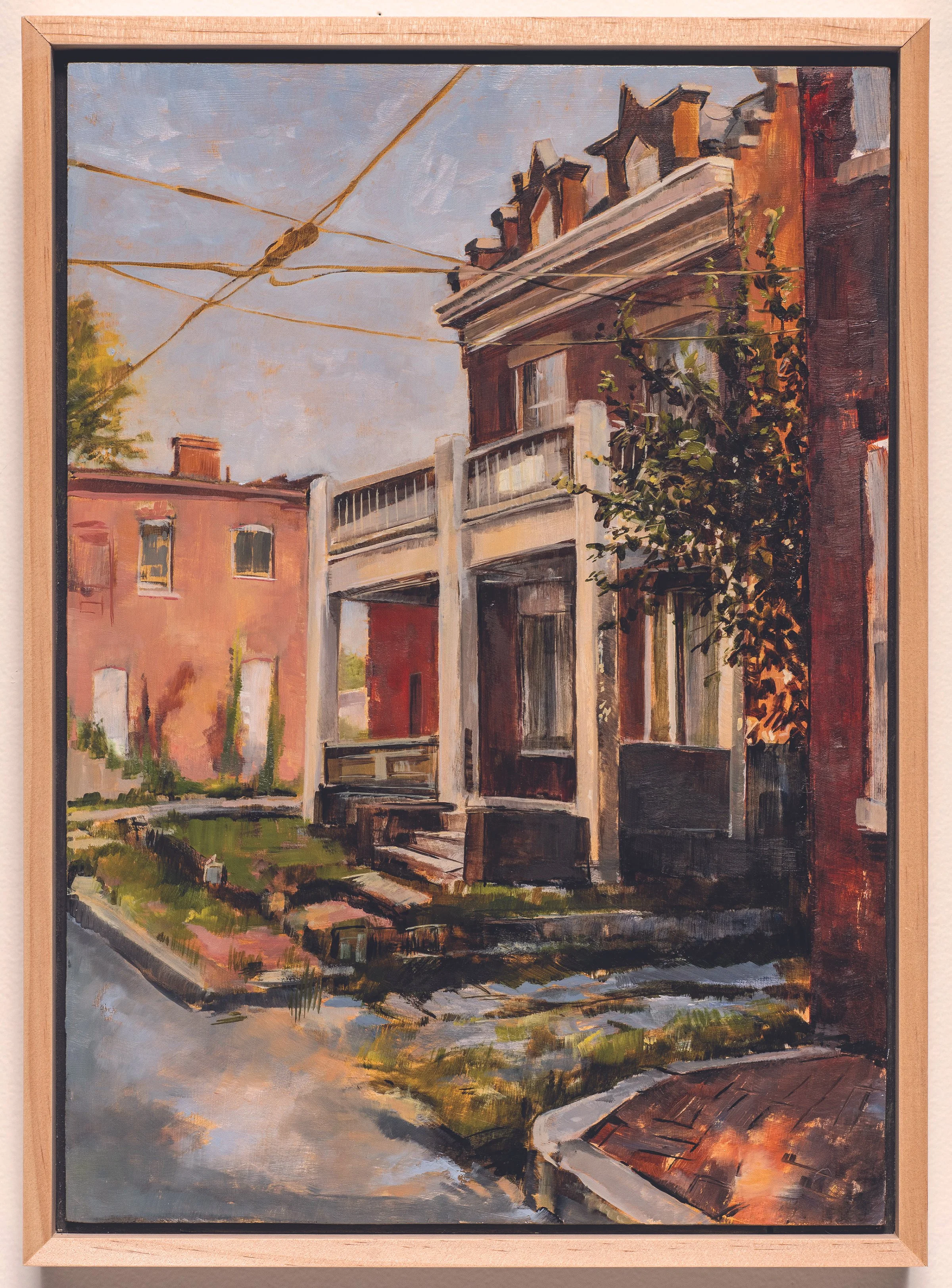 Many of her paintings embody what amounts to the soul of a particular place at a particular time. These can be old houses or screened-in porches, ancient industrial tanks or the rear entrance to a vacant home. And they all tremble with their own pasts.